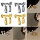 Features: Stand out with these polished metal textured ribbon bow ear earrings, a stylish accessory that adds charm to any look. Crafted from with a unique stacked dangle, these earrings is for everyday wear. Fashion forward women who appreciate jewelry will love these versatiles earrings. Whether you're heading to work or a night out, these earrings is the choice to your look. Add personality to your with these ribbon earrings, a great yourself or a love ones. Specifications: Color:Gold/Silver Weight:About Size:Approx.2.3cm/0.90inch Package Includes: 1 Pair Earrings note: 1.Please allow 1-2cm errors due to manual measurement, make sure that you do not mind before you order. 2.Due to the difference between different monitors, the picture may not reflect the actual color of the item.