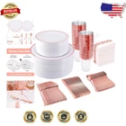 Elegant Rose Gold Disposable Plates and Silverware Set for Weddings & Parties ‹ › ‹ › ‹ › ‹ › ‹ › ‹ › ‹ › ‹ › Elegant Rose Gold Disposable Plates and Silverware Set Transform your gatherings into unforgettable experiences with our exquisite disposable dinnerware designed specifically for weddings, parties, and special occasions. Key Features: Value Pack: Perfect for up to 100 guests, this generous set includes 700 pieces, ensuring no detail is overlooked. Each set comprises: 100 Rose Gold Forks 100 Rose Gold Spoons 100 Rose Gold Knives 100 Dinner Plates (10.25”) 100 Dessert Plates (7.5”) 100 Clear Rose Gold Cups (10oz) 100 Paper Napkins Health-Conscious Material: Crafted from BPA-free, non-toxic, food-grade hard plastic, ensuring safety and durability for your culinary creations. Premium Choice: Enjoy the elegance of high-quality, unbreakable dinnerware that holds more food than traditional paper plates, without the hassle of matching tableware. Perfect for Any Occasion: The polished rose gold finish adds a sophisticated touch to formal dinners, weddings, banquets, and intimate gatherings. Ideal for holiday celebrations, picnics, and everyday use, combining practicality with elegance. Why Choose Our Set? Elevate your dining experience with this Elegant Rose Gold Disposable Plates and Silverware Set. Designed to exude sophistication, this all-inclusive package guarantees a seamless and stylish setup for any occasion. Customer Satisfaction: We are committed to your satisfaction. If for any reason you are not delighted with our rose gold and white plates, please reach out to us, and we will address your concerns promptly. Enhance your events with elegance – order your set today! Shipping Free & Fast Shipping - We offer free shipping to most of the USA with a normal delivery time of 3-7 days. However, due to the current situation, additional delivery time (up to 3 weeks) may be required for some items. Alternative Carriers - We may use alternative carriers (e.g. USPS, FedEx, UPS, etc.) to ensure your package arrives safely and on time. Due to the use of multiple carriers, we are unable to provide a tracking number automatically. Handling Time - Orders are processed and shipped within 1-2 business days of receiving cleared payment. Shipping Restrictions - Shipping to Alaska, Hawaii, Puerto Rico, Guam, and other US territories may incur shipping charges or delivery restrictions. Please contact us before ordering, or your order can be refunded/cancelled. State Restrictions - There may be restrictions based on your state of purchase. For example, certain items may not be shipped to California due to state regulations. Contact for Tracking Updates - If you require tracking updates or have any concerns about the delivery of your order, please feel free to contact us, and we will be happy to assist you. Return 30-Day Hassle-Free Returns - We want you to be completely satisfied with your purchase. If you are not, you can return the item within 30 days of receiving it for a full refund or exchange. Easy Return Process - To start a return, simply contact us and we will provide you with a prepaid return shipping label and detailed instructions. Restocking Fee - There are no restocking fees for returns. However, the buyer is responsible for return shipping costs if the return is not due to a seller's error. Refund Processing Time - Refunds will be processed within 5 business days of receiving the returned item in its original condition. Payment We accept all major credit cards, PayPal, and Apple Pay for your convenience. Your payment information is secure and encrypted to ensure a safe and seamless transaction. Please complete your payment within 3 days of purchase to avoid any delays in shipping. Feedback Your feedback is extremely important to us. We strive to provide the best products and customer service possible. If you are satisfied with your purchase, please take a moment to leave us a positive review. If you have any concerns or issues with your order, please contact us before leaving negative feedback. We are committed to resolving any problems and ensuring your satisfaction. Contact Us If you have any questions or concerns, please feel free to reach out to our customer support team. You can contact us through the eBay messaging system. We are available Monday to Friday, 9:00 am to 5:00 pm EST, and we will do our best to respond to your inquiry within 24 hours. Buy it now and enjoy a pleasant shopping experience! UPC: Not Set Unit Quantity: 700 Material: Plastic Theme: Not Set Occasion: All Occasions,Wedding,Party,Birthday,Camping Set Includes: Complete,Cup,Dessert Plate,Dinner Plate,Fork,Knife,Spoon,Napkin Features: Dishwasher Safe,Microwave Safe Character: Not Set Department: Adults Brand: Unbranded Type: Dinner Set Color: Rose Gold Number of Place Settings: 100 Number of Compartments: Not Set Shape: Not Set Pattern: Solid MPN: Not Set Style: Not Set Country/Region of Manufacture: Not Set Character Family: Not Set Year Manufactured: Not Set Finish: Not Set Number of Items in Set: Seven-Piece Plate Diameter: 10.25 in Manufacturer Warranty: Not Set Model: Not Set Unit Type: Unit Original/Reproduction: Not Set