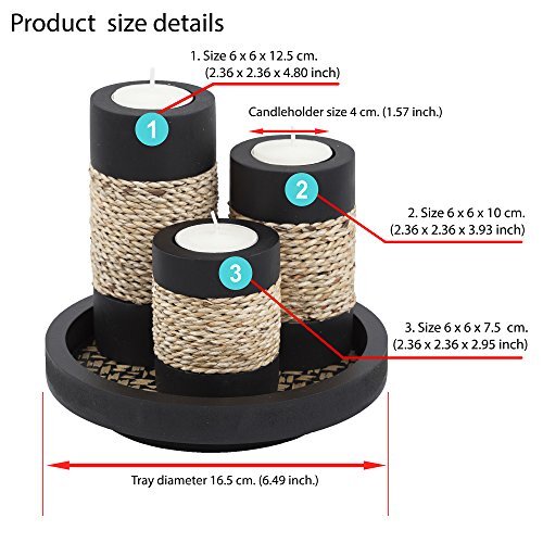IYARA CRAFT Tealight Candle Holders with Candle Tray Set of 3 Decorative Candle Holders Matte Wood Finish with Small Rope Decoration ELEGANT CANDLE HOLDER — IYARA CRAFT’s lovely candle holder set is a perfect way to add to the warmth & beauty of your home's décor with its beautiful wood finish and breath-taking intricate details – make any space more sophisticated & charming! HANDMADE WOODEN CANDLE HOLDERS — With an ornate inlaid aluminium elephant in an antique finish, embellishing the matte finish handcrafted wooden holder, this wood candle holder adds just the perfect amount of luxury & opulence to any space! STYLISH CANDLE HOLDER TRAY — Our set of 3 candle holders comes with a classy wooden candle tray , which adds to its tasteful design, and helps hold the wooden candle holders in place – helping you have a captivating tablescape effortlessly! and good for centerpieces for dining room table decoracion para el hogar MULTIPLE DÉCOR OPTIONS — Use it as a mantelpiece ornament, a center table piece, side table embellishment or as a garden adornment in your home, office or studio to improve the aesthetic appeal, and create a relaxing & welcoming ambience — VERSATILE DÉCOR ACCESSORY! PROMISE OF GUARANTEE — We ensure the -quality standards in the making of our decorative candle holders. However, should you be dissatisfied with the product, we ensure a product replacement or a complete money back guarantee, with no questions asked. Give an easy makeover to your interior, lighten up your space while creating an enchanting ambiance, and add warmth & color to your furnishing with IYARA CRAFT’s beautiful antique wooden candle holders! IYARA CRAFT’s SET OF 3 WOODEN CANDLE HOLDERS -Illuminate your home with our handmade wooden holders that are set with the beautiful elephant that boasts antique finish and amazing detail, which can grace every occasion – from parties, spiritual occasions, weddings to formal events! -Made of wood, these candle holders are safe, unlike glass candle holders that can burst or crack due to heat. -Our set of 3 candle holders & a wooden tray with dry leaf décor is a great value for the inexpensive price! -Adds a cozy & warm touch to your living room, dining room, kitchen, bedroom or even your personal reading space! -Gift our wooden candle holders to your significant other, family, friends or colleagues — GIFTING MADE EASY! -Accentuate your space with its simple design – goes well with both modern and rustic settings. -Its intricate design & warm light adds a hint of drama to a formal setup. -Each set contains 3 candle holders and a wooden tray. It does not come with candles. WE OFFER 100% SATISFACTION GUARANTEE! Should our product fails to satisfy you, we will replace the product or refund your money with no questions asked. So, why think twice? ORDER NOW to get this beautiful set of 3 handmade antique candle holders & a tray! Shipping We offer FREE shipping on all orders! We ship within Three business days of payment, usually sooner. We use a selection of shipping services such as UPS, FedEx, USPS etc. We only ship to the lower 48 states, no APO/FPO addresses or PO Boxes allowed. Local pickups and combined shipping options are not provided at this time. International buyers – please note: Import duties, taxes, and charges aren't included in the item price or postage cost. These charges are the buyer's responsibility. Please check with your country's customs office to determine what these additional costs will be prior to bidding or buying. Order Cancellation Policy * Order Cancellation Policy ** You can return a product for up to 30 days from the date you purchased it. 1. The seller reserves the right to cancel the special case only due to eBay cancellation fee. 2. The decision of seller is the final. 3. The seller will respond to the cancellation request within 2 business days. Please wait for the result of cancellation. 4. In case the cancellation is not completed by some reasons, the buyer can follow the options below to get the refund. 4.1 The buyer can reject the item when it arrives. 4.2 The buyer can send the item back to the seller within 30 days If the buyer receives item (USA Shipment ONLY). The seller will provide the FREE return label to the buyer when the buyer opens " Return Item" case on eBay by using the reason as "Change my mind" ONLY. 5. When buyer has placed the order. The order will be processed and completed by automatic warehouse system within 5 minutes. In case that buyer sends the cancellation request after 5 minutes of placing the order, the request will be rejected. **Sending direct message to cancel the order is not allowed for every case.* Return Policy - If buyer would like to return the items for refund or replacement, please CONTACT SELLER to receive the free return label from seller. The refund or replacement will be processed with the tracking number of return label which is provided by seller only. The other ways of return which are not approved by seller will not be processed for the refund or replacement. Return You can return a product for up to 30 days from the date you purchased it. Any product you return must be in the same condition you received it and in the original packaging. Please keep the receipt. Payment We accept payment by any of the following methods: eBay Payments Please pay as soon as possible after winning an auction, as that will allow us to post your item to you sooner! Feedback Customer satisfaction is very important to us. If you have any problem with your order, please contact us and we will do our best to make you satisfied. Contact Us If you have any queries, please contact us via ebay. We usually respond within 24 hours on weekdays. Please visit our eBay store to check out other items for sale! Thank you for shopping at our store.