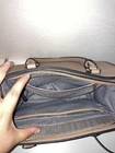 Carry your essentials in style with this sophisticated structured laptop tote bag. Designed in a versatile taupe color with gold-tone hardware, this bag is both fashionable and functional — perfect for the office, school, or everyday use. It features: • Dual carrying options: sturdy top handles and an adjustable/removable crossbody strap • Spacious main compartment to fit a laptop, documents, or daily necessities • Exterior zip pocket for easy access to small items • Elegant gold hardware for a polished, modern look This timeless piece combines practicality with chic design, making it a reliable companion for both professional and casual settings. Condition: Fair/ used, convenient overall condition. Summary: • Laptop tote bag • Work tote bag • Taupe handbag • Women’s laptop bag • Structured satchel • Office work bag • Crossbody tote bag • Neutral handbag • Everyday work tote • Laptop shoulder bag