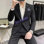 $ 10.56Men's Luxury Spring Business Wedding Suit Double Breasted Coat & Pants