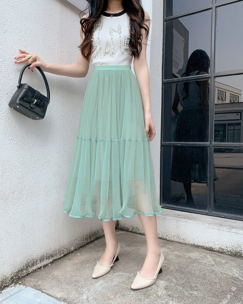 New spring/summer women's elegant half-length skirt Color: Apricot Black Green Khaki Purple Size: equal size Waist 60-105CM, skirt length 78CM, skirt lining 60CM Material: Polyester Type: Skirt