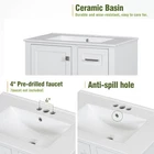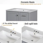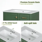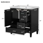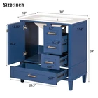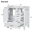 Bathroom Vanity Size Overall Dimensions: 30"W x 18.3"D x 34"H.(The faucet is not included.) Elegantly Modern Design This vanity for bathroom with a white countertop creates a refreshing color combination that catches the eye. Its sleek lines and gold handles add a modern touch, enhancing the aesthetics of your bathroom. Crafted with Durability in Mind Constructed with a solid wood frame and MDF panels, this bathroom vanity ensures excellent stability and durability, resistant to cracking. The countertop is made of ceramic material, which is smooth and textured, with an ideal depth to prevent splashing water. The surface of the dresser is waterproof. Keep Your Bathroom Organized Equipped with a 30" sink, this vanity for bathroom provides ample storage space, featuring 1 cabinet and 3 drawers of different depths and widths, perfect for neatly organizing various bathroom essentials, keeping your bathroom tidy and clutter-free. Soft-Close Doors The bathroom vanity is equipped with high-quality hinges and slides, ensuring a gentle and silent closing, allowing you to enjoy a noise-free environment. Easy Assembly All the necessary hardware for assembling the vanity for bathroom is included in the package, eliminating the need for additional purchases. The assembly process is straightforward with detailed instructions provided, requiring only two adults and approximately 1 hour to complete. ELEGANTLY MODERN 30 IN BATHROOM VANITY THE PRODUCT DEMINSIONS AND WEIGHT THE DETAIL OF THIS BATHROOM VANITY SOLID WOOD FRAME LARGE CAPACITY DURABLE METAL HANDLES FIVE COLORS FOR YOU TO CHOOSE As a professional bathroom product manufacturer, we always provide you with better products and more efficient services, but the following service terms need to be known to you: 1: If you find some problems with the product after receiving the goods, please do not discard the product, because we need you to provide pictures or videos of the relevant faults to better serve you. 2: Please note that we do not bear the installation/assembly costs. If you find a fault during the installation of the product, we will not bear or reimburse this cost because we stipulate that all parts must be checked before booking. 3: Delivery within the United States only, excluding Alaska/Hawaii, Puerto Rico, Guam, Saipan, APO/FPO, US Protectorates and PP Box. Usually the delivery time is 1 to 7 business days. If you still have not received the goods after 7 business days, please contact us immediately and we will track the order for you. 4: If your goods are damaged when delivered, you must refuse the order and describe the damage on the receipt. Just fill in "the goods are damaged". If you accept the goods and the damage is not noted on the receipt, we reserve the right not to refund or replace your goods. If you are not satisfied with your purchase, please contact us within 7 days. Please note that there is a 20% restocking fee and all shipping and handling charges are the responsibility of the buyer.