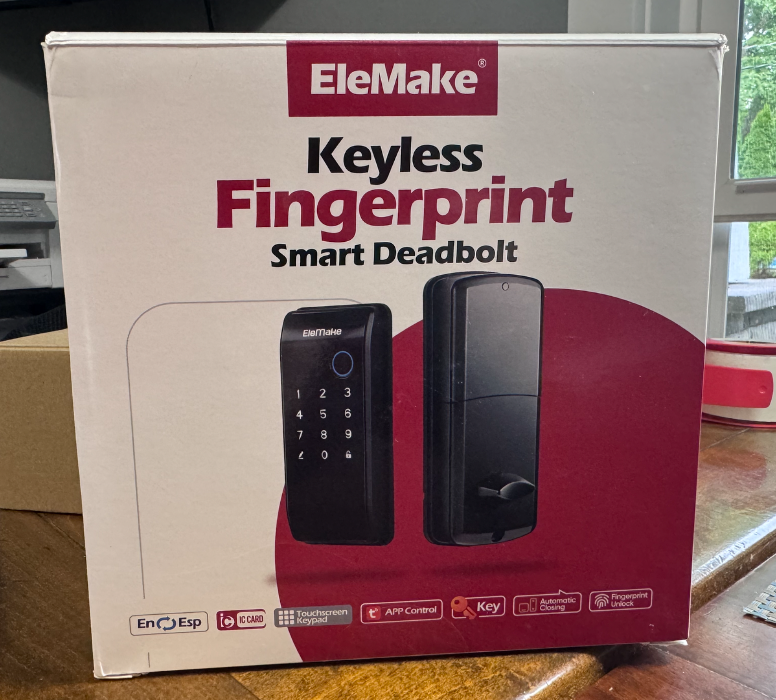 This smart deadbolt was used for about one year. It was easy to install and very reliable. I used the keypad, fingerprint reader and physical keys. This package includes all original items.