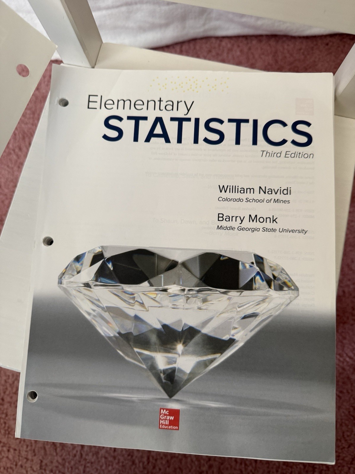 The product is a Loose Leaf Version for Elementary Statistics 3rd Edition by William Navidi and Barry Monk. Published by McGraw-Hill Education in 2019, this textbook covers the subject area of Mathematics, specifically in the field of Probability & Statistics. With 1632 pages, this ringbound book is designed for students and educators looking for a comprehensive and up-to-date resource on statistics. The authors provide clear explanations and examples to help readers understand complex statistical concepts.