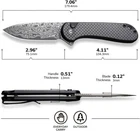 Elementum II Pocket Folding Knife, " Damascus Blade Utility Knife with Deep Carry Pocket Clip for EDC Classy, Minimalist, Aesthetic --- Flipper opener with a ceramic ball bearing pivot ensures a smooth and reliable action. The knife blade is secured in place via a button lock. Damascus Blade --- Its razor-sharp edge and ergonomic handle style effectively perform everyday tasks. All-Round Knife for Men --- This folding knife is built to excel in any environment with confidence, makes it a reliable tool for both outdoor and indoor needs. Discreet and Safety Carry --- Carry with confidence with a deep carry clip whether in your pocket or backpack, ready for immediate use. Voted "Best Edc Knife"--- This pocket knife is easy to use, suitable for all adults, also can be a nice gift to a friend whether they're into knives or not. USA Service Center --- knives and tools provide a service against defects in material and workmanship.
