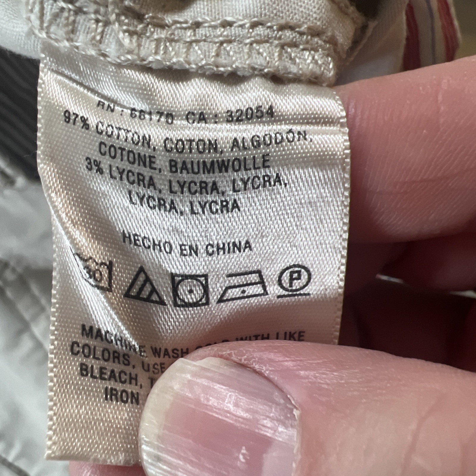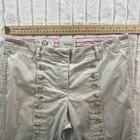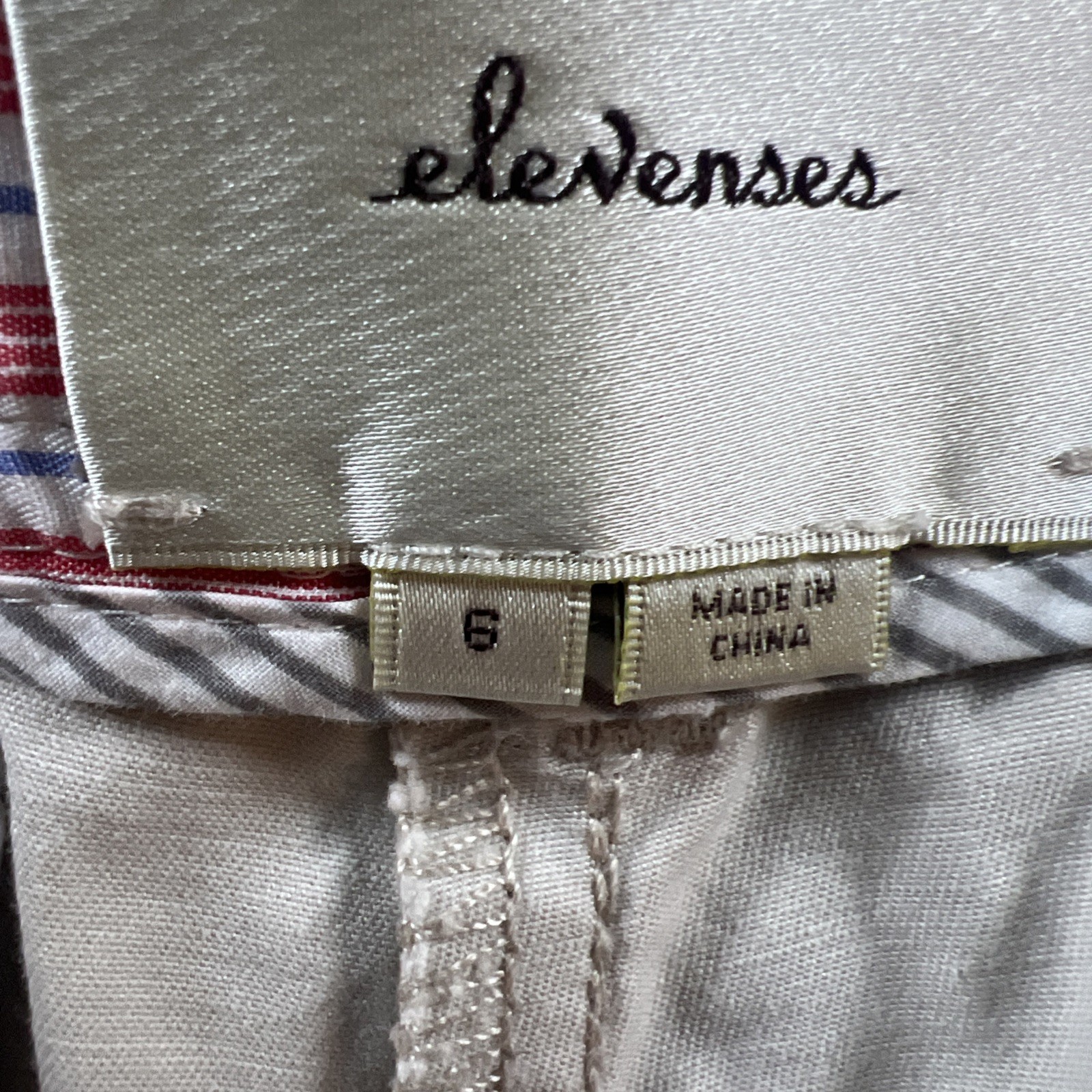 The Elevenses size 6 button-down front design pants in tan from Anthropologie are a stylish and classic choice for a casual occasion. Made from 97% cotton and 3% lycra, these solid beige pants feature a zip closure and button accents. With a regular fit and standard rise, these designer pants from Elevenses are a versatile addition to any woman's wardrobe.