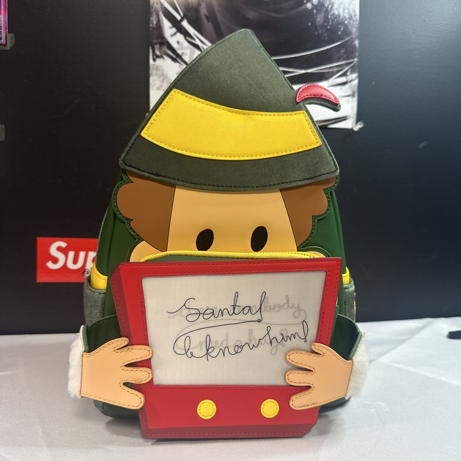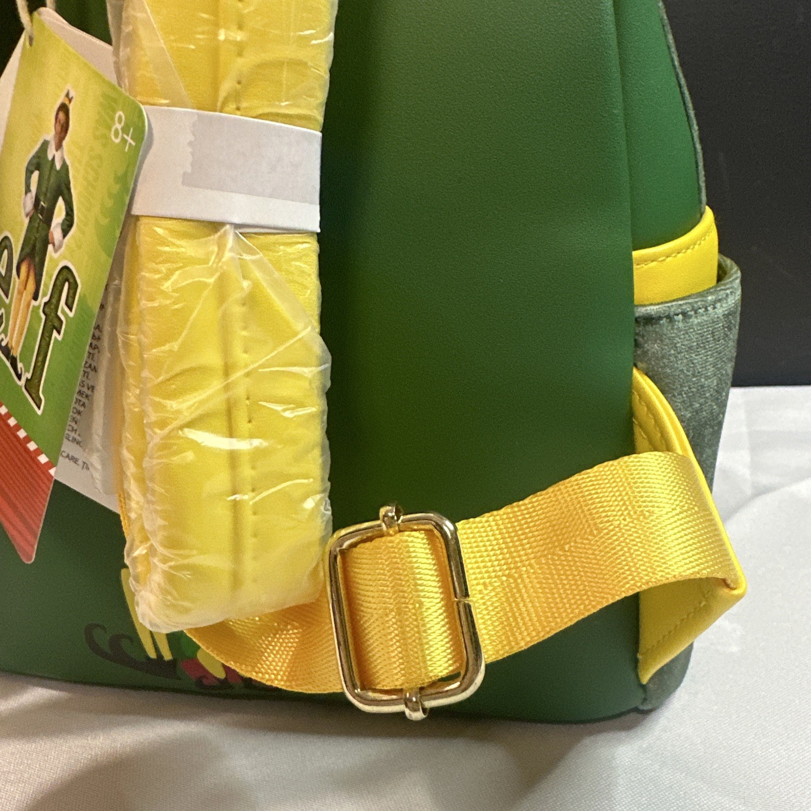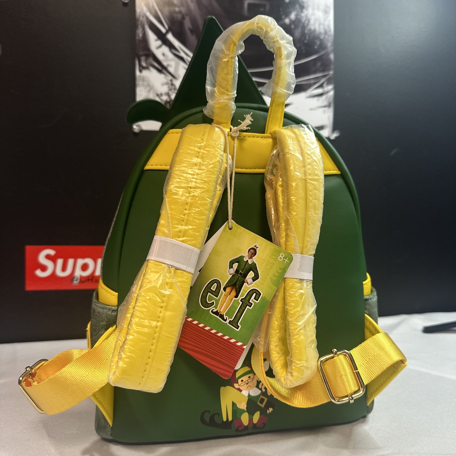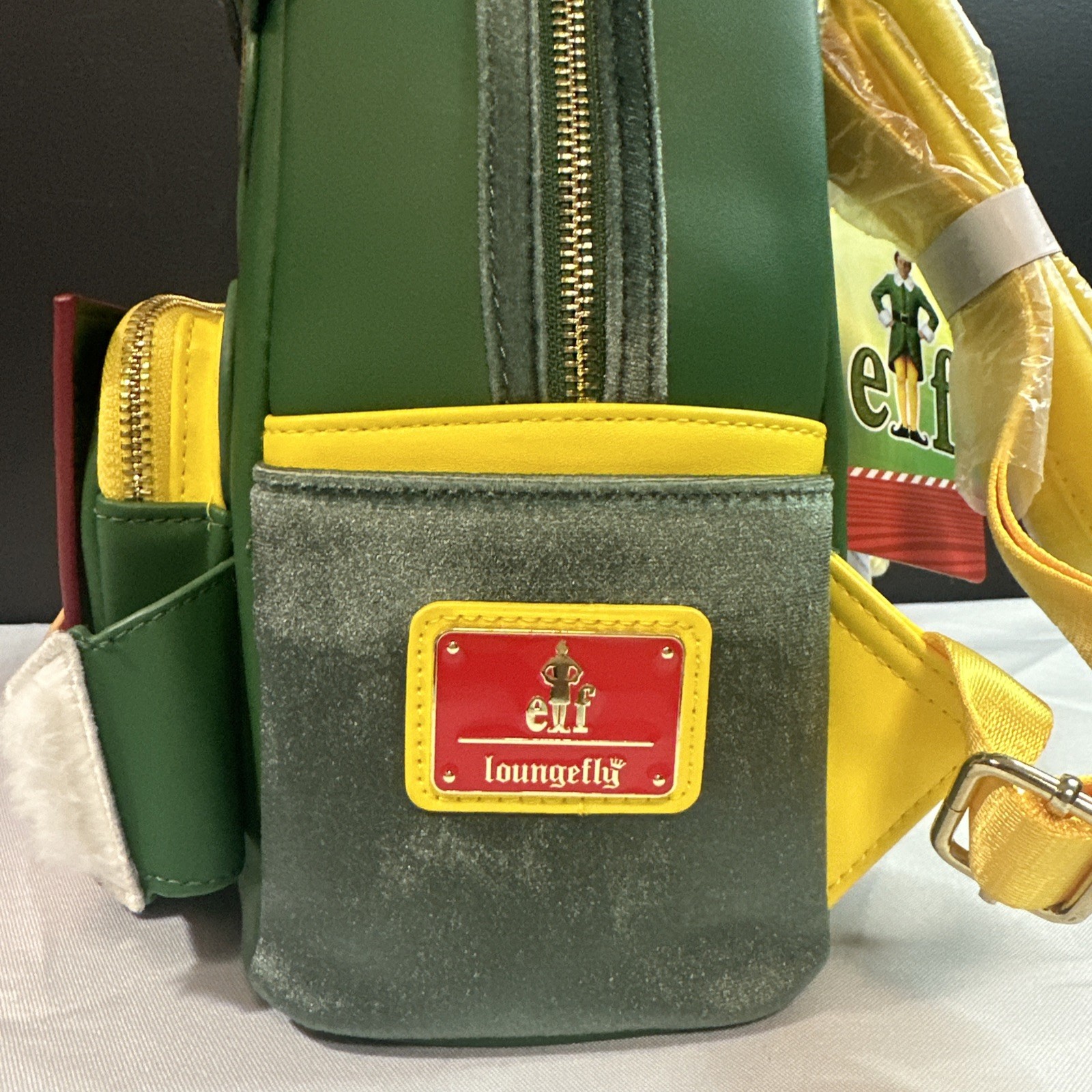 The Elf Loungefly 20th Anniversary Cosplay Lenticular Mini Backpack is a stylish and unique accessory for women. Featuring a solid green exterior with a zip closure, this officially licensed backpack is perfect for casual occasions. Made of polyurethane fabric, it showcases the iconic Elf character design and is part of the TV & Movies product line by Loungefly. The lenticular design adds a fun and playful touch to this one-size backpack, making it a must-have for fans of the beloved TV movie. With its printed finish and high-quality construction, this backpack is a great addition to any fan's collection.