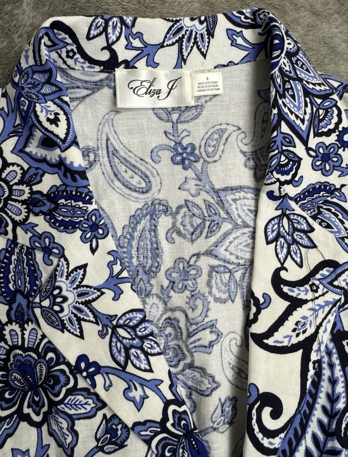 Stay cool and chic in this stunning sleeveless dress by Eliza J. Featuring a crisp blue and white floral paisley print, this dress is made from a breathable linen-rayon blend with a soft cotton lining for added comfort. The collared V-neck and tailored button front give it a polished look that’s perfect for summer gatherings, casual Fridays, or weekend outings. •Brand: Eliza J •Size: 6 •Sleeveless with collared V-neck •Button front closure •Shell: 55% Linen, 45% Rayon •Lining: 100% Cotton •Care: Dry clean only •Condition: Gently pre-owned, excellent condition Pairs beautifully with sandals, flats, or wedges for an effortlessly fresh look! ⸻ Disclosure: All pieces are vintage or pre-owned unless otherwise stated. I do my best to describe each item accurately, but pieces may show light signs of age or prior use. Items have not been cleaned or polished. Shipping: USPS Ground Advantage (2–5 business days), ships within 1 business day. calculated based on buyer location. Offers welcome!