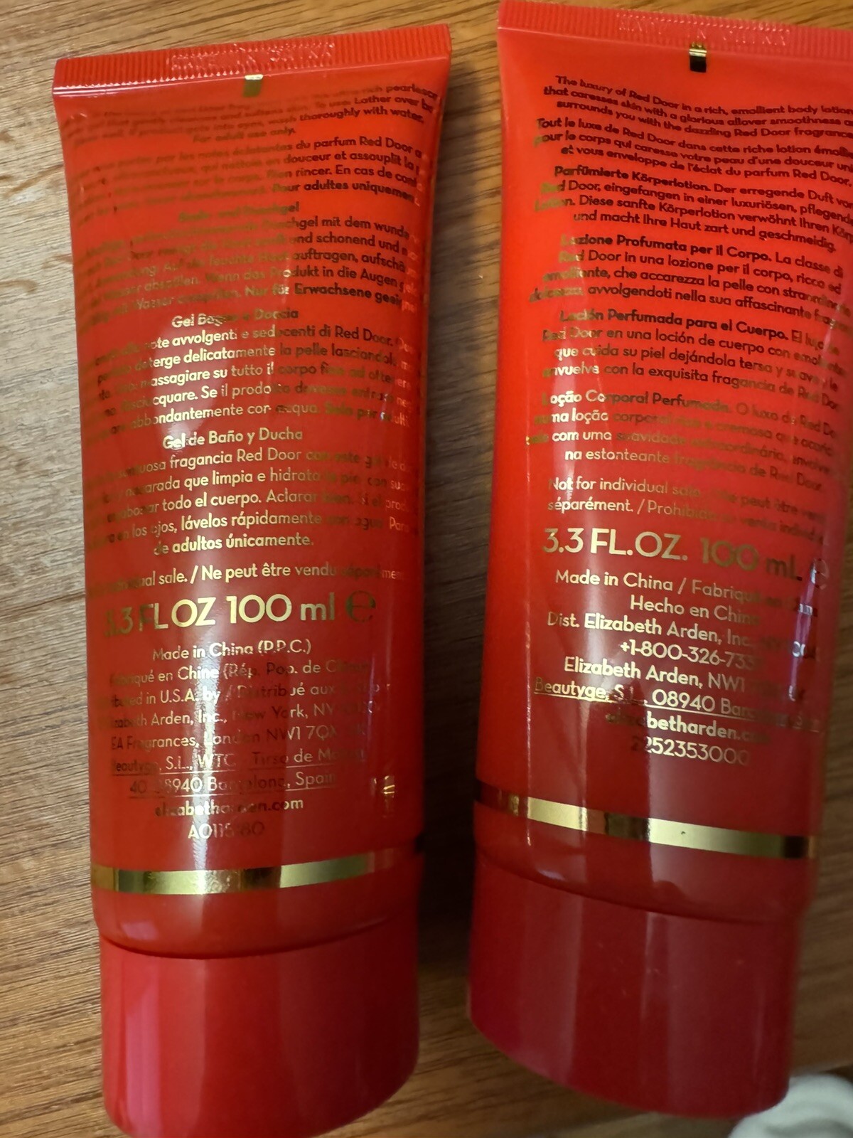 This Elizabeth Arden Red Door bath and shower gel was offered at a very reasonable price, and I was happy to add it to my Red Door collection. The order was processed and shipped promptly, and it arrived in perfect condition. I highly recommend this seller! A+++++ seller!!
