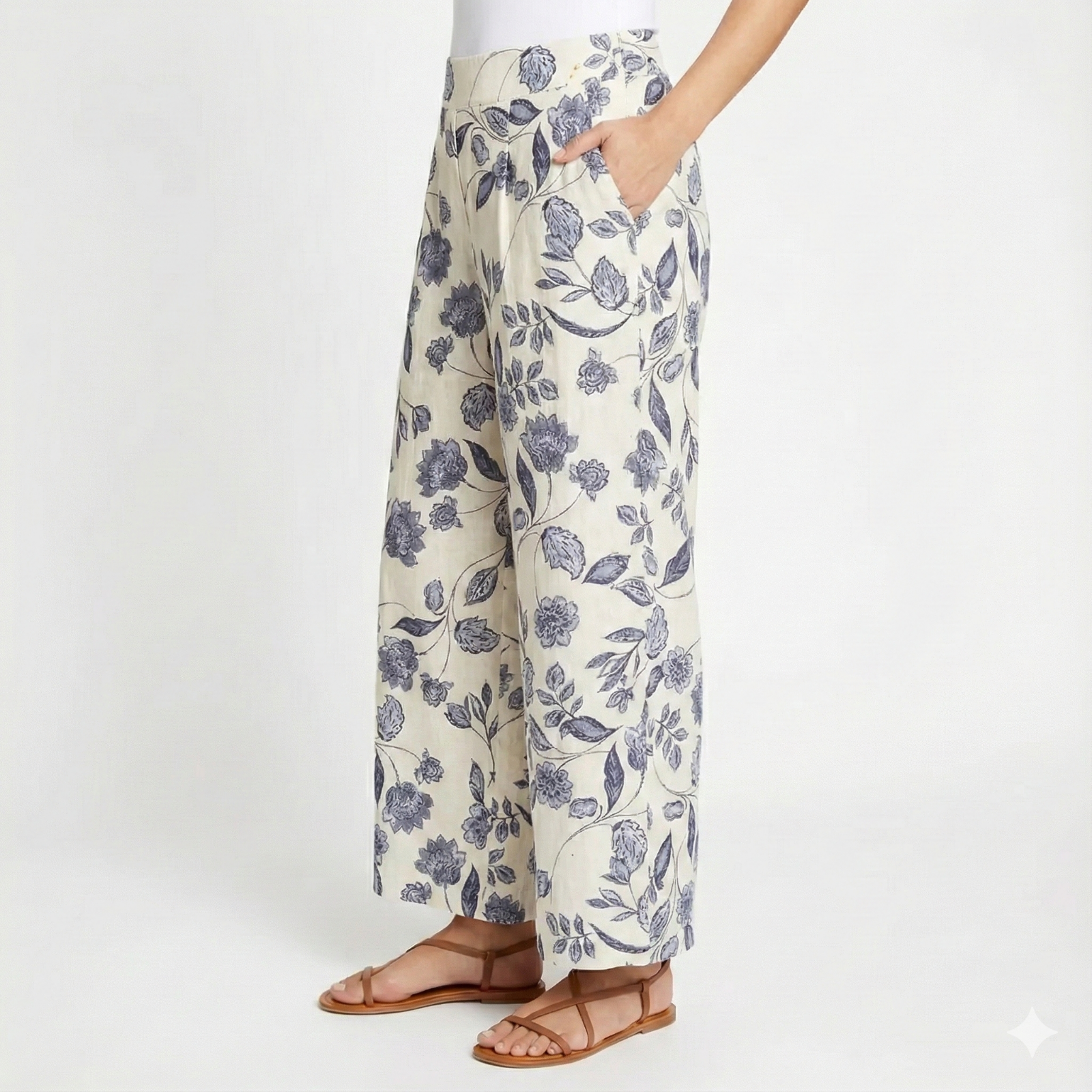 These Ella Moss Size 2XL Blue & White Floral Palazzo Pants in a wide-leg boho style are perfect for a casual occasion. The pants feature a high-rise waist with an elastic waistband for comfort. The multicolor floral pattern and pleated accents add a touch of bohemian flair to the outfit. Made with machine washable fabric, these pants are easy to care for and ideal for the summer and spring seasons. The wide-leg design and flat front give these stylish pants a trendy and lightweight look. Brand new with tags, never used, and thoughtfully packaged for a perfect delivery experience