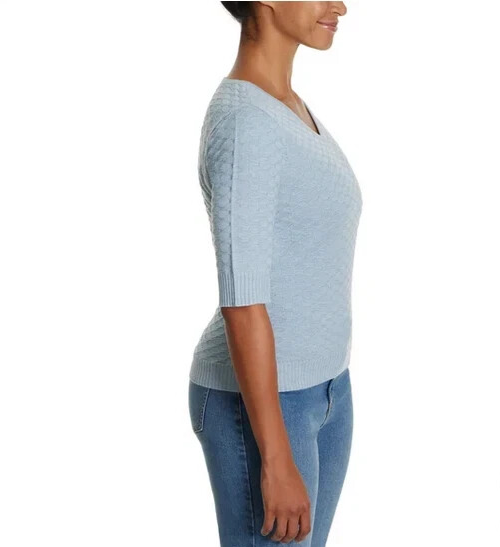 Ella Moss Women's Elbow Sleeve Lightweight Sweater Size: Small Color: Light Blue Content: 85% Polyester / 15% Nylon