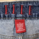 These Elle women's jeans are in a size 6 with a waist size of 30 inches and a 26.5-inch inseam. They feature a medium wash denim with a distressed look and studded accents on the pockets. The style is straight leg with a low rise. Made from a cotton blend material, these jeans have a zip closure and are designed for regular sizing. Waist 30” Inseam 26.5” Outseam 35” Rise 8” Leg opening 6”