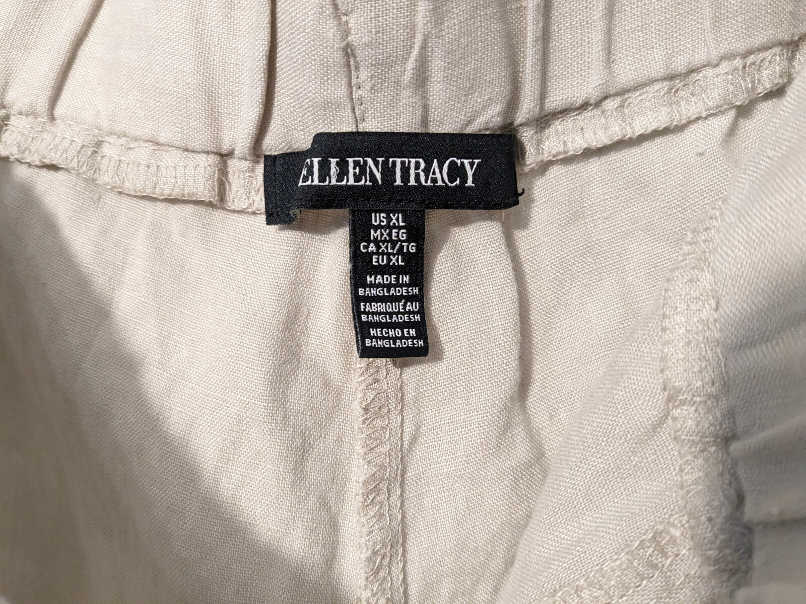 These Ellen Tracy pants are perfect for summer! They are 100% linen and these are in great condition. The color is a very pale gray/beige/taupe color. There is an elastic waist with a drawstring and no pockets. These are an XL with a 38" waist, 46" hips, 13.5" rise and 27" inseam.