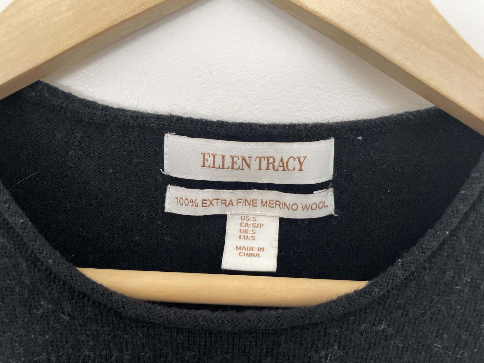 Ellen Tracy Women's Solid Black 100% Extra Fine Merino Wool Long Sleeve Shirt S. Condition is pre-owned. Smoke free, pet free home. Shipped via USPS Ground Advantage. In good condition. There is a hole at the hem of the shirt. Free of stains.