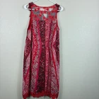Ellie Tahari McKenna Sleeveless Floral Chiffon Silk Red Lace Metallic Stripe Sz 12 Excellent preowned condition! Sleeveless Beaded Sequined Mesh floral appliqué on back Silk blend Tassled tie at neck and waist Lined P2P: 20" Length: 41" Measurements are lying flat, and estimates only. 1P75 11-6502 8 oz Tags: elegant, exotic, luxe, wedding, event, party