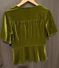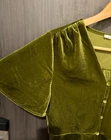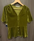 Ellison Blouse Top Women's Small Green Velvet Pleated Short Sleeve Button Front Description Ellison Blouse Top Women's Small Green Velvet Pleated Short Sleeve Button Front . Product Detail • Brand: Ellison • Department: Women 's • Color : Green • Type: Top Please message me if you have any questions. Please check photos above for measurements. Listing and template services provided by inkFrog