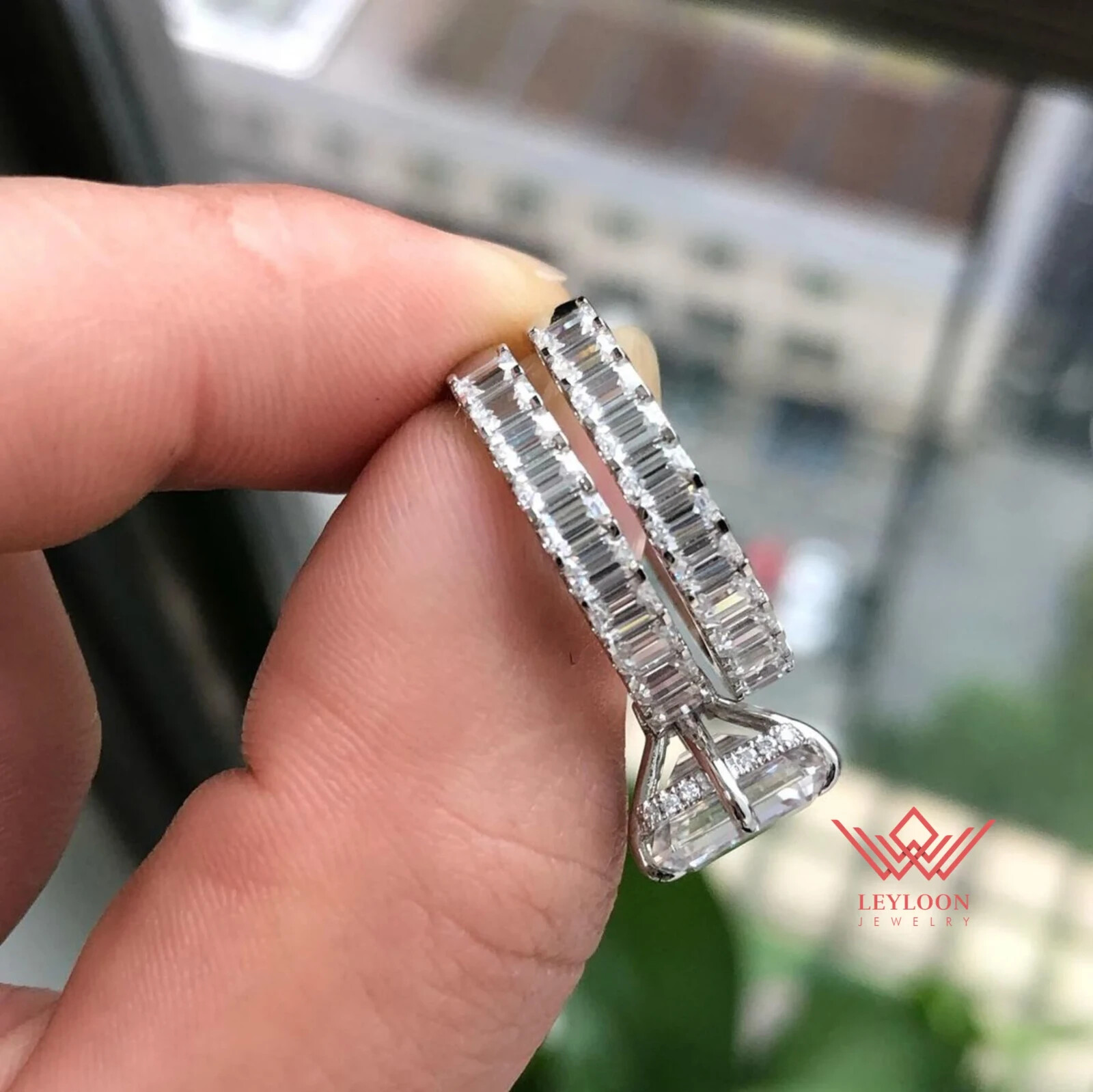 Emerald Cut D Color Subtle Halo Two Piece Bridal Moissanite Set ๐ Available Metals: A) 5X Platinum Vermeil, B) Solid 10K Gold, C) Solid 14K Gold, D) Solid 18K Gold, E) Solid 950 Platinum. โ HIGHEST QUALITY Certified White Gold, Rose Gold, Yellow Gold & 950 Platinum. (Not Trash). ๐ Ring Size: 2,3,4,5,6,7,8,9,10,11,12,13,14,15,16 and anything between these ring sizes available. It could be 1/4, 1/2, or 3/4. We Fit It to your Exact Finger Size no matter what size you want. ๐ Main Stone: HARDEST Quality VVS GRA Certified Hand Cut Moissanite (Pass Diamond Testers) โจ Side Stones: Premium Quality VVS Moissanite. (Pass Diamond Testers) ๐ Certified: GRA - GRC ๐ Polish: Excellent Polish. Shiny & Clean for Maximizing Sparkles. โฆ Cut: Hand cut Excellent cut & Symmetry with Crisp & Sharp Edges/Corners. ____________________ ๐ 100% Handmade with GORGEOUS & Accurate Details. Itโs an Art, not only a Valuable Material. ๐ 60 Days Money Back Guarantee for Any Reason even if you don't Fall In Love with it. ๐คฏ FREE LIFETIME Main Stone Warranty & Side Stone Replacement. (No Color Change). ๐ FREE LIFETIME Jewelry Cleaning & Re-plating. ๐ Hypoallergenic. Skin Friendly. Doesnโt cause any type of Allergies. ๐ Customizable with/to Your Favorite Stone/Jewelry Type & Shape. ๐ FREE STUNNING Random GIFTS On Every Order (we sell them for +$200 up to over +$700). ๐ฅฐ Amazing Wooden Gift Boxes for Your Main Jewel & its Gifts. ๐ฅณ Gift Wrapping Available (we wrap with no tags or receipts, ready to present). ๐คฉ VIP Customer Service to Make Your Dreams Come True in the Most Fantastic Way. ๐ FREE SUPER FAST FedEx Express Shipping. ____________________ ๐โ + Our 5X Platinum Vermeil: Platinum is 9.4 times RARER & slightly more DURABLE than gold. Rings with platinum end up more EXPENSIVE than gold because the DENSITY of platinum is a lot HIGHER and the QUALITY is EXTREMELY PURER. Rings THICKLY plated FIVE TIMES with platinum offer MUCH STRONGER PROTECTION against wear and scratches than gold plated jewelry. Therefore they LAST the LONGEST while giving you a SHINY LOOK ALL THE TIME. ๐โ + Our Rare Stone Quality: Here you have the NATURAL looking color of the diamonds in a RARE size with extraordinary VVS1 clarityโฆ Weโre offering the GREATEST QUALITY and VALUE at the BEST PRICE with this design by using very SPECIAL types of GRA Certified Moissanite stones. Natural diamonds in this color, clarity and size are super rare and very hard to find. Some of them easily cost over $10,000 per carat. (please message me for natural diamonds like this color, size and shape so I can give you the accurate price based on your preferences) ____________________ ๐ข๐๐ FREE FAST EXPRESS SHIPPING Processing + Shipping = Receiving Time PROCESSING: Only 1 available. This ring will be shipped within 48 hours. (Other sizes require customization for 2-3 weeks. ) SHIPPING: 2-6 days via FedEx Express for FREE โ Youโll get updated with the tracking code, once your package is shipped. โ We ship with insured FedEx only which is very secure. โ An adult signature is required at the time of delivery. _____________________ โ๐๐ CUSTOMIZATION/PERSONALIZATION: Custom orders with me are SUPER EASY & COMFORTABLE, no matter if youโve never done it before or youโve done lots of them. ๐ค I break down everything into small steps. And we go through the steps one by one together. On each step, youโll get to pick or guide me from the options I represent. ๐ Once we get to the end, your dream comes true. ๐คฉ๐ Because every single detail is just exactly what you want. ๐๐ ๐จ HOW TO DESIGN YOUR RING: A โ Send me some/one image similar to your idea. Or tell me whatโs your favorite shank, profile or stone? So I can show you some options to choose from. B โ Next, I will start designing it right away. Iโll send you some screen shots from what I designed. We can adjust any part of it together, until itโs exactly the way you want it to be. C โ After we get to the ideal conclusion, Iโll render several Ultra High Quality 3D images and a 4K video, so you see what the end result is gonna look like in reality. D โ The moment you approve everything, we start making it. Once itโs finished, weโll ship it the same day. + 3D IMAGE SAMPLES: Before you order yours, you can ask me for some samples of the 3D rendered images and videos. Youโre gonna absolutely love the quality, because they look like real rings. ๐คฉ๐ + Designing your dream ring with me is gonna be a fantastic experience. While you just sit and order, youโll watch how I take care of everything from your idea to the end product in the SIMPLEST & GREATEST way possible.โ โ------------ ๐ AVAILABLE GEMS: All stones are available - Colorless & Colorful Moissanite or Simulated Moissanite. Natural & Lab Grown Diamonds in Colorless or Colorful. Natural and Lab made Emerald, Ruby, Sapphire, Amethyst, etc. Just ask! ๐ฅ AVAILABLE METALS: All metals are available - 925 Sterling Silver, 5X Platinum Vermeil, 9K Solid Gold, 10K Solid Gold,14K Solid Gold, 18K Solid Gold (in Rose, White or Yellow), Platinum 950. ๐ AVAILABLE MATCHING PIECES: We can make matching pieces for this product. Engagement Rings, Bridal Sets, Wedding Bands, Earrings, Studs, Hoops, Bracelets, Bangles, Necklaces, Pendants, and anything youโd dream of. We can design all to set with this item. ๐จ๐จ๐ง๐ฆ AVAILABLE OTHER JEWELRY: We make jewelry as per occasion and celebration like birthdays, birth months, anniversaries, motherโs day, valentine's day, fatherโs day, memorials, thanksgiving, zodiac signs, graduation days, and many more per your request. ____________________ โโโโโ 5 STAR PRISTINE PROMISES: โฆ๏ธ 100% Satisfaction Guaranteed โฆ๏ธ Ethically Sourced โฆ๏ธ FREE Lifetime Ring Resizing โฆ๏ธ FREE Complimentary ENGRAVING โฆ๏ธ 100% Conflict Fre
