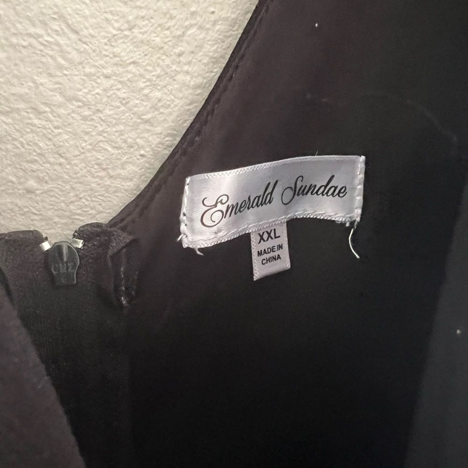 This stunning black gown by Emerald Sundae features a sleeveless design with a sophisticated V-neckline, perfect for cocktail parties or a night out. The floor-length maxi style offers an elegant silhouette, while the rich black color adds a touch of timeless sophistication. Crafted for those special occasions, this dress is a must-have for your evening wardrobe.