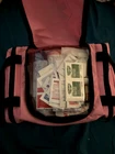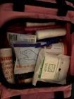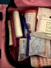 Be prepared for emergency situations with this comprehensive car first aid kit. The kit includes a fire blanket, seatbelt cutter, and other essentials to ensure you have everything you need to handle any crisis. The pink or red bag design adds a stylish touch to your car's safety kit.With a manufacturer part number of 100235641 and made in the United States, this auto safety kit is a must-have for any driver. The kit is designed for easy use and storage, making it a perfect addition to any car. Get peace of mind on the road with this emergency car first aid kit. Kit includes: -10.5"x 5"x 8" first aid bag (red or pink color) -1 fire blanket -seatbelt cutter and window breaker -medical scissors -medical flashlight -1 rain poncho -1 tourniquet -2 pairs of individually packaged gloves - 1 BleedStop First Aid Powder for Blood Clotting -17 Assorted bandaids of different sizes (including one extra large and one waterproof bandage) -1 First Aid medical information wallet card -1 splint -1 elastic wrap -1 elastic bandage -2 gauze rolls -4 alcohol prep pads -4 iodine pads -1 burn dressing -1 triangle bandage -tweezers -2 packs ibuprofen -2 packs acetaminophen -2 packs burn ointment -2 packs sinus decongestant -2 packs hydrocortisone cream -2 packs anti-acid tablets -2 mini sunscreen spf 50 packets -2 packs chlorophen antihistamine -2 packs diatome tablets (diarrhea relief tablets) -2 packs Loratamed tablets (allergy relief) -2 packs triple antibiotic ointment -1 emergency blanket -1 ice pack -2 mini hand sanitizer packets -CPR mask keychain