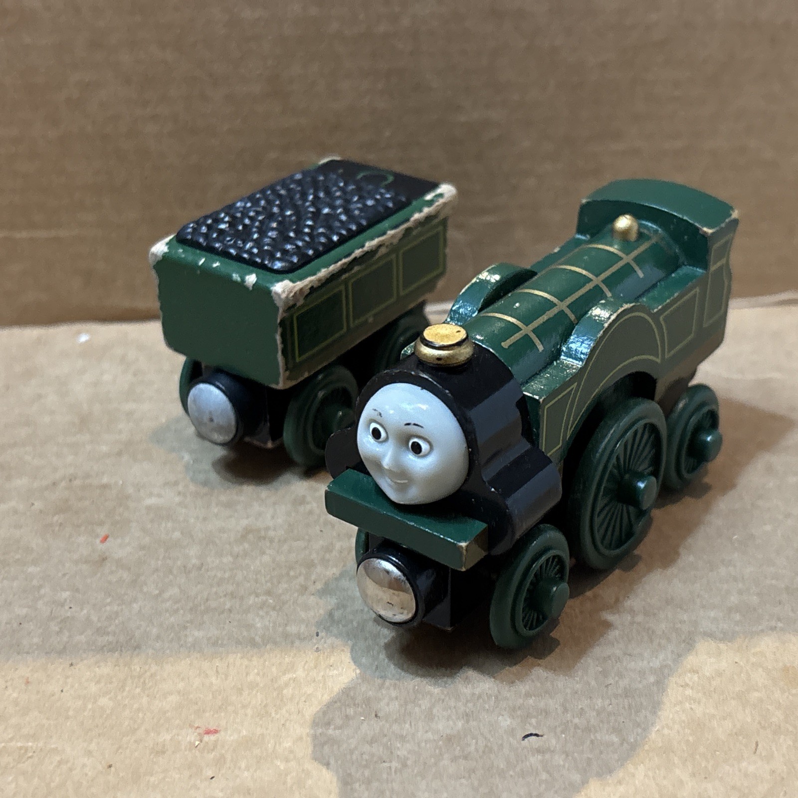 Emily & Unmatched Tender - Thomas & Friends Wooden Railway Train Tank Engine 2003 Used - see photos for wear and tear. Ships usps ground advantage. The tender does not talk - the Emily Talking Engine was all busted, so these two got together.