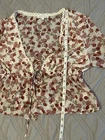 Emory Park Pink Sheer Floral Peasant Top. Condition is Pre-owned. Shipped with USPS Ground Advantage.