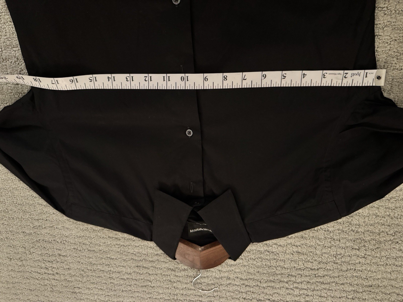 The Emporio Armani Men’s Black Tailored Cotton Shirt in XS is a stylish and versatile addition to any man's wardrobe. This solid black shirt features a collared neckline, long sleeves, and a button closure. Made from comfortable cotton material, it is perfect for casual occasions during the summer and spring seasons. The shirt's tailored fit and point collar style make it a classic and timeless piece that can be easily machine washed for convenient care. With its reputable Emporio Armani brand, this shirt combines quality craftsmanship with modern design for a sophisticated look.