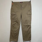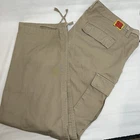 These pre-owned, gently worn Empyre Cargo Pants are designed for a casual, relaxed fit, featuring a flat front and tapered legs. The khaki color and cargo style give them a versatile and grunge-inspired look, perfect for skateboarding or a 90s hip hop aesthetic. With a waist size of 30 inches and inseam of 29 inches, these pants offer both comfort and practicality, complete with functional pockets for everyday use. No rips or stains.