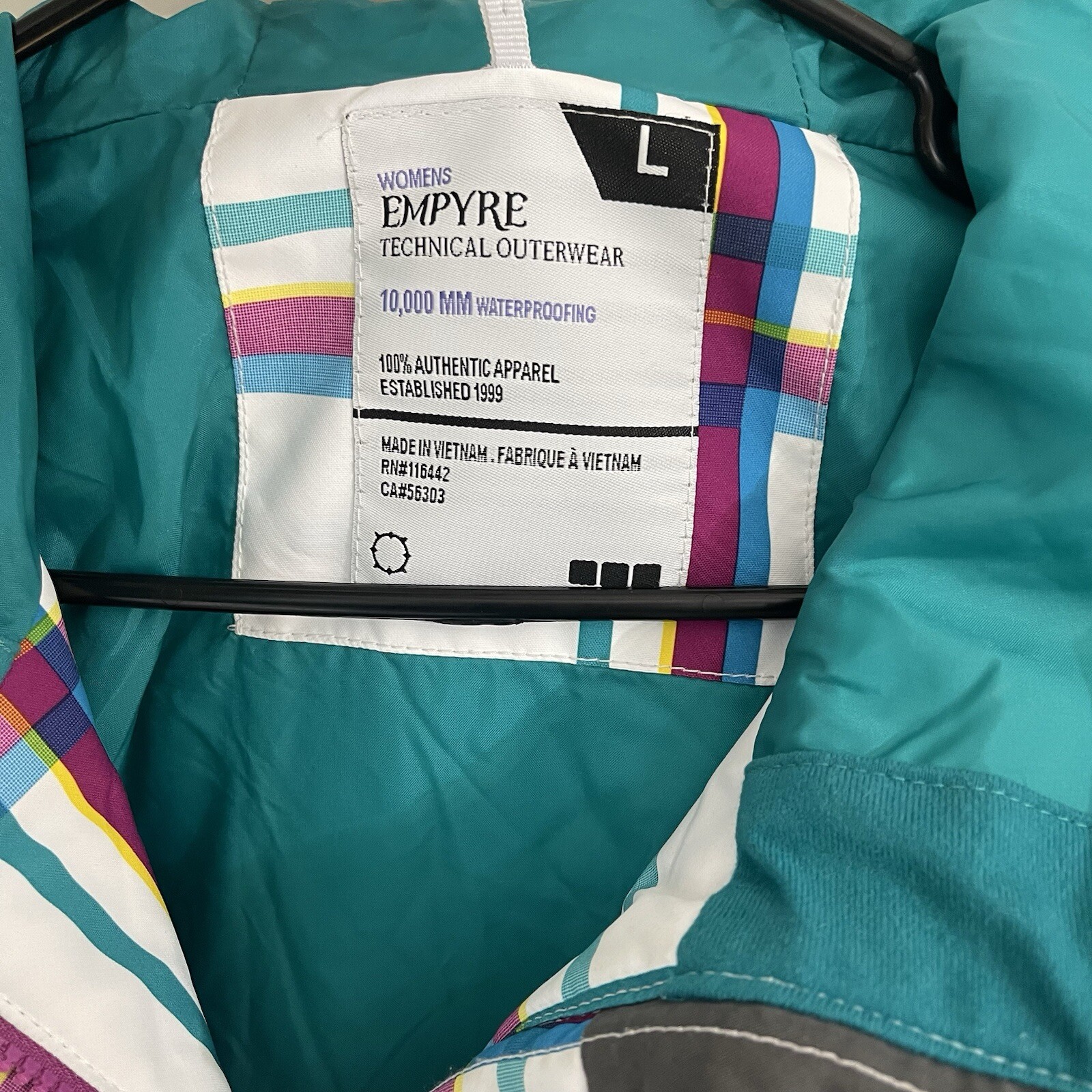 Empyre Women’s Snowboards Ski Jacket Winter Coat size Large See two small spots shown in 6th picture otherwise like new Pit to pit 22” Length 29.75”