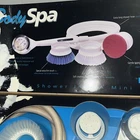 Please see pictures for all details open box looks new brushes look new The Emson Body Spa 1999 is a USA-made universal shower system designed for use in the bathroom, specifically in the shower. It features a rotating shower head for a versatile and customizable showering experience. This shower system is suitable for providing a relaxing and refreshing showering experience in your home, with the added convenience of being able to adjust the direction of the water flow to your liking.