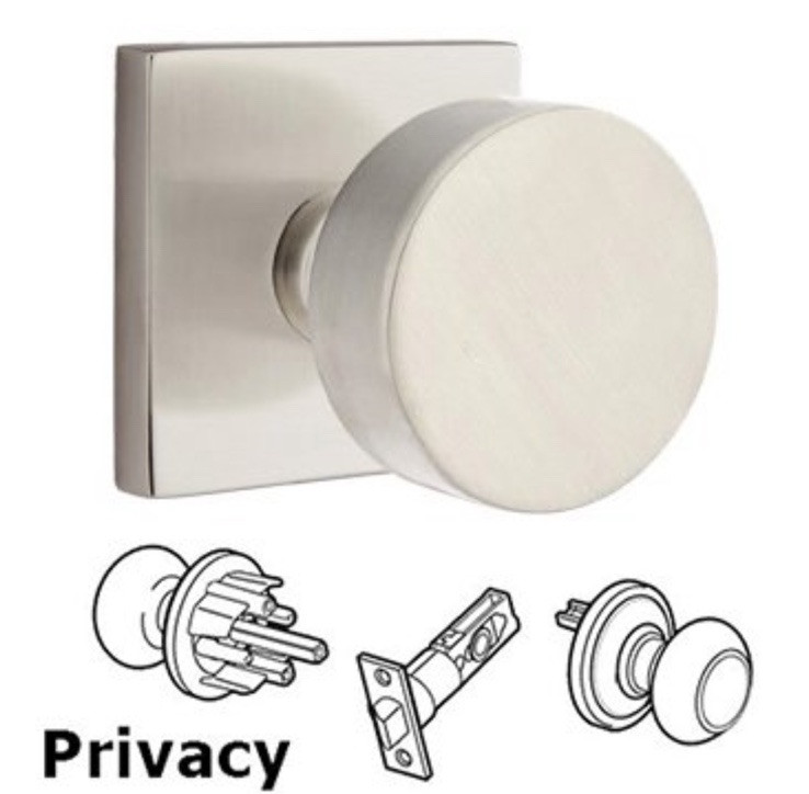 Brand new in box, we will beat any online price. The lowest price we see online is $133 plus shipping, our cost $99 with free shipping. Emtek's 5210ROUUS15 Satin Nickel Privacy Knob Set with Square Rose offers a contemporary style for your home's security. This knob set is made of solid brass with a sleek satin nickel finish that adds a modern touch to any door. The set features a trim lock mechanism that ensures privacy. The square rosette shape and round knob shape provide a sleek and stylish look, while the concealed screws and easy-to-install feature make installation a breeze. This set is approved for residential use and comes with a latch faceplate in both round and square corners. Choose between left, reversible, or right handing to suit your specific needs.