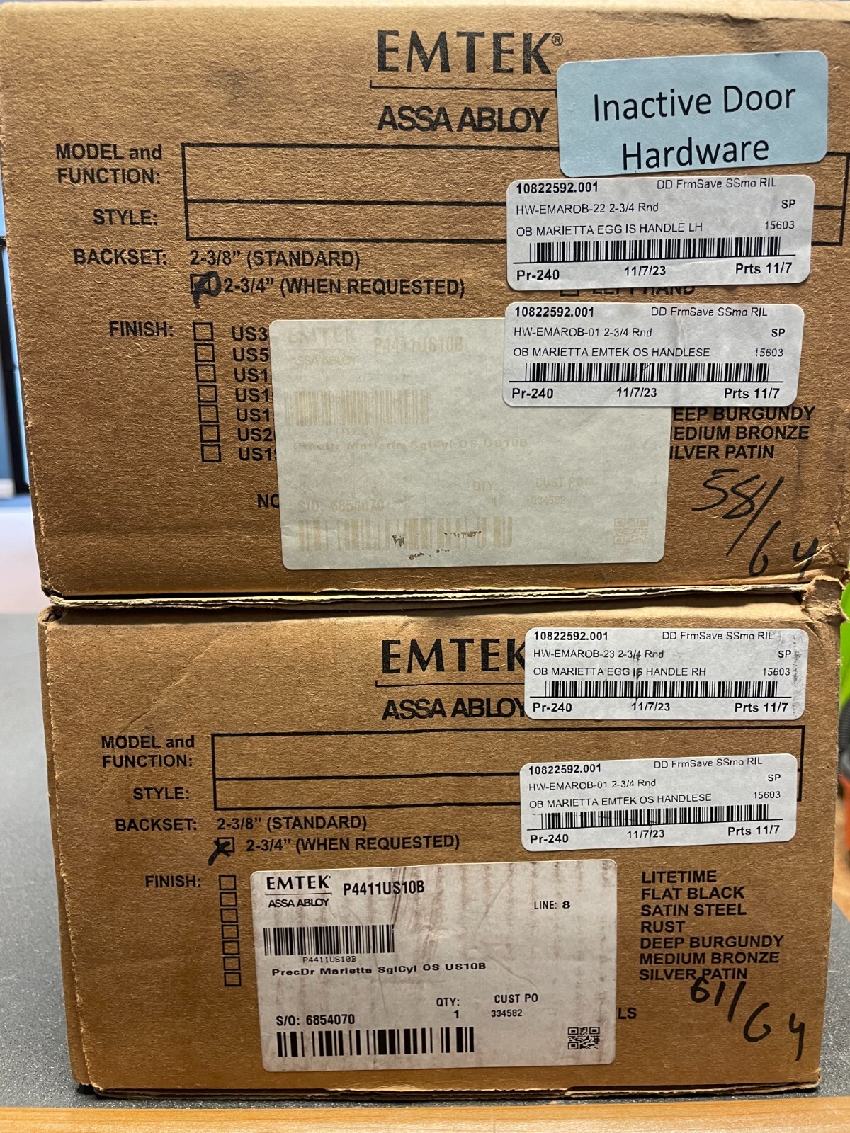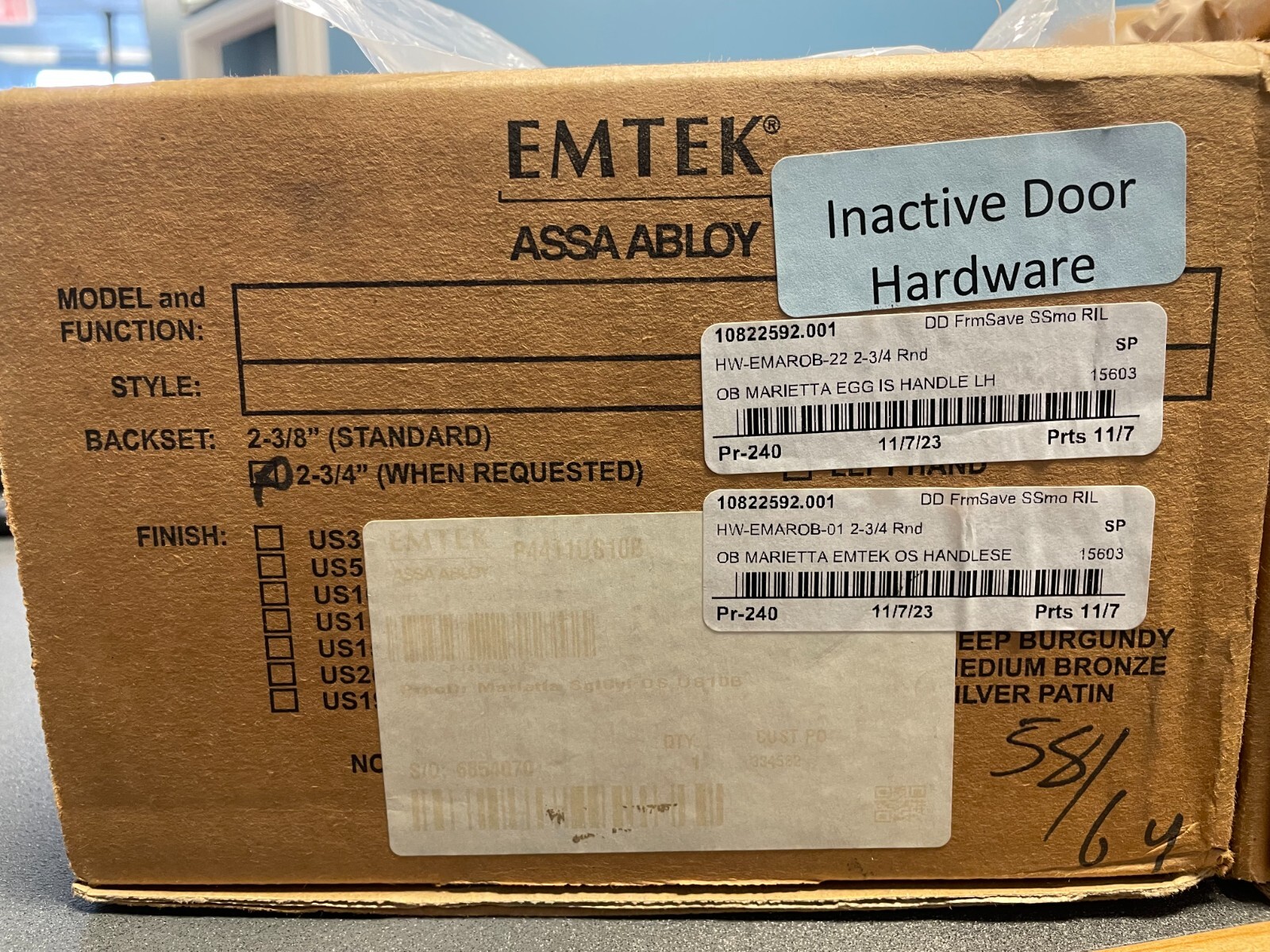 Emtek 4411US10B Marietta Single Cylinder Entry Handleset - Oil Rubbed Bronze w/ Egg Knob - Includes Dummy Handle, sold as set - RH Active, LH Inactive - 2-3/4" Round - RH Active, LH Inactive - Boxes opened, job cancelled prior to installation - Paid over $850 for the set!