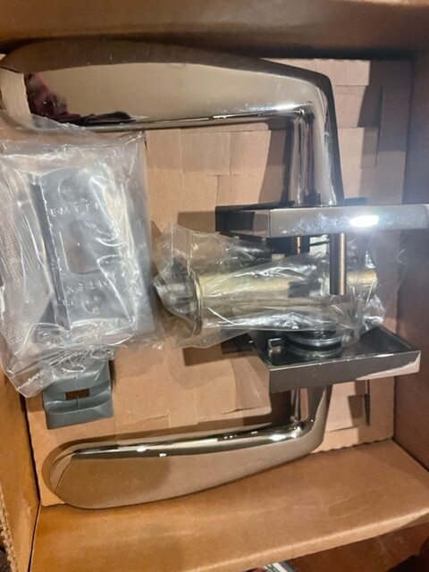Brand new, unused set in open package. Solid brass construction. Right Hand door installation (door opens to the right away from you when walking into the room). Square rosette. This set has a solid, heavy and expesive feel to it.