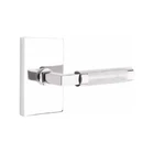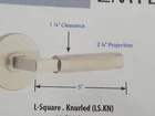 has scratches to plate . Unable to capture with photos due to being polished chrome. To much reflection 2 3/4" latch Emtek Knurled L-Square Privacy Door Lever Set with Square Rose and CF Mechanism from the SELECT Brass Collection Model: C5210US26.LSUS26.KNUS26 from the Knurled Collection Privacy: Privacy door hardware features a locking mechanism on the interior for use on bedroom and bathroom doors where locking is needed. The exterior side features a small pin hole to unlock the door hardware from the outside. Features: Constructed of high quality brass for durability and dependability Installs easily with all necessary mounting hardware included ADA compliant Screws are concealed for a more streamlined look 28 degree latch requires less rotation, providing a smoother operation Specifications: Backset: 2-3/4" Cross Bore: 2-1/8" Edge Bore: 1" Door Thickness: 1-3/8" to 1-3/4" Handing: Reversible Left or Right Handle Length: 4-5/8" Handle Projection: 2-1/8" Trim Width: 2-1/2" Trim Height: 2-1/2" Product Weight: 2.00 lbs. Latch Faceplate: Round Corner or Square Corner
