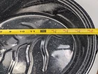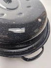 Enamelware Black & White Speckled Oval Oven-Roaster Pan w/ Lid Base dimensions: 12 3/4 W x 16 1/2 L Pre-owned item, used condition showing signs of wear and use. There is some flaking in certain spots on the base and the lid, it does not affect the use. All images provided accurately represent the item(s) you will receive and should be regarded as an integral part of the description. We encourage you to carefully review each image. If you have any questions or need further details about this listing, please feel free to reach out to us.