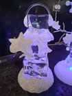 The product is a set of two medium-sized acrylic snowmen figurines featuring an enchanted forest pattern, perfect for the Christmas season. Made of glasses and resin with a high gloss finish and glitter details, these snowmen exude a whimsical and magical vibe. Powered by AA batteries, they offer a 3D effect and a textured design, making them a charming addition to any holiday decor collection.these are heavier