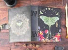 The Enchanting Luna Moth Blank Spell Book Leather Journal is a luxury edition, limited edition, and 1st edition handmade journal featuring 200 deckle-edged pages. The leather cover is personalized and the journal is crafted in India. This beautiful and unique piece offers a mystical and enchanting feel, making it an ideal choice for those seeking a special and magical writing experience. Exquisite Handcrafted Leather Journal - Luna Moth Print - 200 Deckle-Edged Pages - Available in Various Sizes" Unleash your creativity with our Exquisite Handcrafted Leather Journal featuring a captivating Luna Moth Print. This journal is a masterpiece, not just for your ideas but for your senses too. It boasts 200 premium deckle-edged pages that invite your pen to dance across their textured surface. Available in various sizes - 7x5, 8x6, 10x7, and 13x10 - you can choose the perfect canvas for your imagination. The genuine leather cover exudes quality and durability, and it even comes with a one-month warranty. Whether you're gifting it or keeping it for yourself, this journal is designed to inspire and endure. Get ready to embark on a creative journey like no other. Leather Journal Luna Moth Print Handcrafted Notebook Unique Artistic Diary Deckle-Edged Pages Premium Vintage Leather Sketchbook Nature-Inspired Writing Journal Rustic Leather Traveler's Diary Blank Page Personalized Notebook Elegant Luna Moth Design Quality Leather Bound Book Creative Gift Idea Available in 7x5, 8x6, 10x7, and 13x10 sizes
