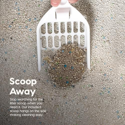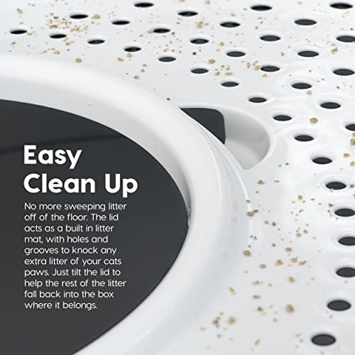 MADE IN USA with global materials - The IRIS USA top entry kitty litter tray offers a functional and aesthetically pleasing solution to your cat's bathroom needs. With the top entry kitty litter box, everything stays inside and out of sight, and the enclosed design lessens the prevalence of unpleasant odors in the room, something that's sure to make everyone in the family happy. TOP ENTRY - The top entry of the cat litter pan means more privacy for your cat, less litter spillage, and any spraying remains contained within the tall walls of the kitty litter box. It also functions to keep other pets, such as dogs, out of your cat's business, making for a stress-free environment for everyone. TIDY - The little holes in the lid catch any lingering litter particles on your cat's paws and keep them from spilling out onto the floor, keeping the area neat and clean and making clean-up a breeze. ORGANIZED - The included scoop features a hook, allowing you to hang it from the side of the kitty litter pan to store it between cleanings and have it within reach whenever it's needed, making the days of hunting around for the scoop a thing of the past. GREAT SIZE - Outside dimensions: 20.5"L x 14.75"W x 14.38"H, Entry: 9.25" Diameter, Inside dimensions (bottom): 17"L x 11.5"W
