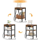 Side Table with Outlets and USB Ports: The charging station includes 2 3-prong AC outlets and 2 USB ports, meeting your needs to charge your phone, desk lamp and laptop freely. 59 inches power cord provides great convenience for daily use Adjustable Shelves for Storage: This 3-tier sofa table with two open and adjustable shelves can be exchanged freely between shelf and mesh rack upon your preferences. Personalized large storage space is convenient for you to put articles, making your room far away from clutter! Multifunctional Use: 15"L x 11"W x 21.7"H in size, this bedside table features space saving and lightweight design in order to move and carry effortlessly. Rustic brown finish and elegant style goes well with your living room, bedroom, balcony, dorm, study and other tight spaces! Firm and Stable: The steadiness of this industrial end table comes with solid matte black metal legs and shelves. 4 adjustable feet support the balance of this side table on uneven ground and protection from scratch on the floor Assembly is a Breeze: Thanks to the explanatory & easy-to-understand instructions and simple structure of the side table, all you need is to follow the specific steps and swing the Allen key supplied. Everything is done in minutes. So don't wait any longer and enjoy it to your home right now