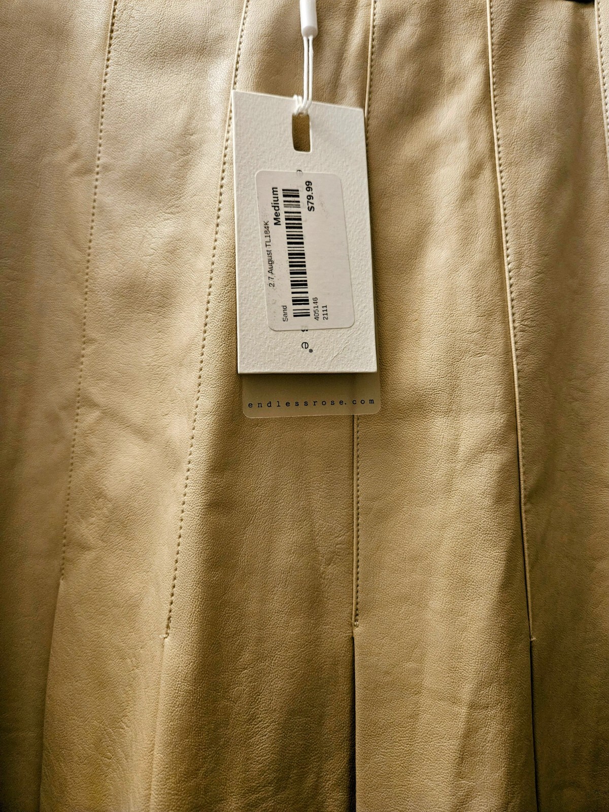 Upgrade your wardrobe with this chic Endless Rose pleated leather skirt. Perfect for any occasion, this solid beige mini skirt features a mid-rise and a zipper closure. The skirt is made of high-quality leather and is accented with pleats, adding a touch of elegance to your outfit. This skirt is perfect for women who want to make a statement with their fashion. The skirt is available in size M and is suitable for regular size types. It is important to note that this skirt requires dry cleaning only. Add this skirt to your collection and elevate your style today.