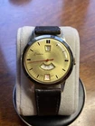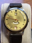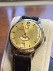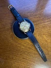 Here is a Swiss, c.1960s Endura watch with Jump minutes & hours, and very unusually featuring a central seconds hand. Working very well with a fantastic loud tick. The watch has a nice finish which is either rose gold plating to the front or a polished base metal where gold once was, either way it is consistent and in good condition for its age. Very good condition to the dial & crystal. Comes on a vintage leather strap.