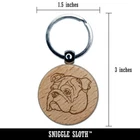 English Bulldog Head Engraved Wood Round Keychain Tag Charm
