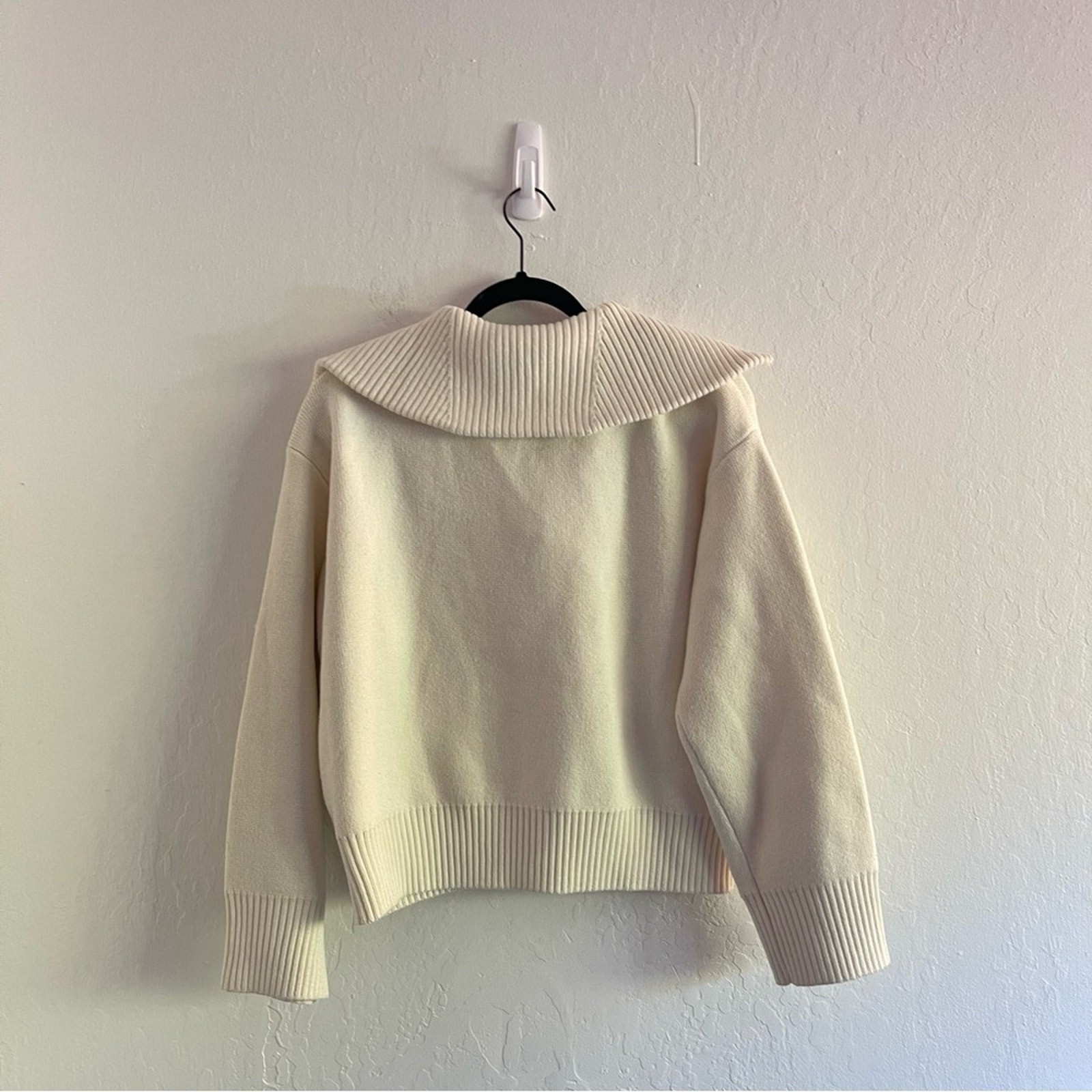 English Factory Cream Quarter Zip Knit Sweater Oversized Womens Size Small This item is in great preowned condition, cute, trendy. Great for fall and winter. Heavy weight, knit, shawl collar. Elegant cream sweater with a stylish design. Perfect for any occasion. Material tag removed. Women's Size Small Approx Measurements: Pit to Pit: 23 in Length: 21 in