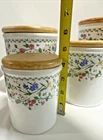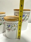 This FULL set of Farberware canister is a must-have for any kitchen. The set includes four canisters in various sizes, with a total of four compartments, making it easy to store and organize your baking and cooking ingredient needs. The canisters are made of ceramic and porcelain, with a beautiful floral pattern and a suction lid solid wood type. Not only are these canisters functional, but they also add a touch of elegance to your kitchen décor. They are airtight, easy to clean, and dishwasher safe, making them a convenient addition to your kitchen. The set is an original Farberware product in the 1990s. Get your hands on this fun and curiosity-filled canister set today! To save you $, We always offer combined shipping on multiple items purchased that are shipping to the same address! Every effort is made to check all items visually and by touch. Antique and vintage items have had a former life, so refer to the photos as they are an important part of the description. Some collectors prefer items in true vintage/antique patina. This means many pieces are unwashed so that the collector can proceed with their preferences. Your questions are encouraged prior to bidding. Props used in item images are not included in purchase unless specifically stated in description. We very carefully pack all fragile items to help withstand the perils of transport. All packaging and unboxing of received items is recorded for quality assurance. We strive to give our customers excellent service. If there is a concern, please let us know immediately so we may attempt to resolve it. THANK YOU!