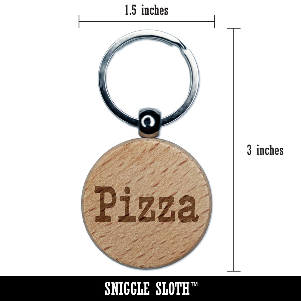 Engraved Pizza Fun Wooden Round Keychain Charm Tag