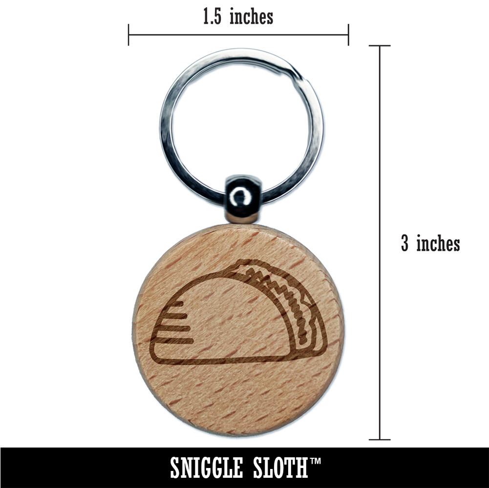 Engraved Wooden Taco Keychain Charm Doodle Design