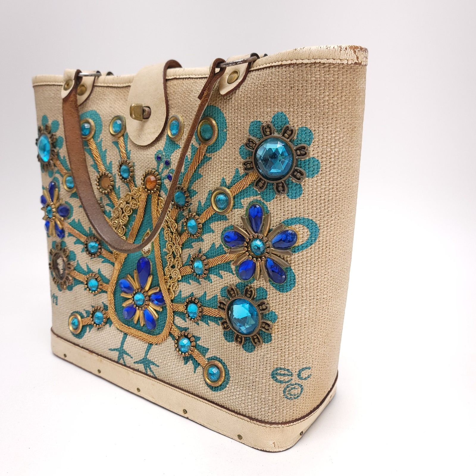 Enid Collins Of Texas 1960’s Wood Box Purse "mira flores" Boho Vintage Handbag