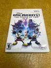 The product is a video game titled "Epic Mickey 2: The Power of Two" designed for the Nintendo Wii platform. It is rated E for Everyone, indicating it is suitable for all ages. The game is published by Disney Software, known for creating family-friendly entertainment. "Epic Mickey 2: The Power of Two" likely follows the adventures of Mickey Mouse in a whimsical and interactive world, offering players the opportunity to engage in a variety of fun and challenging gameplay experiences on the Wii console. Includes: Item and Box only Condition: Normal wear Description: No manual, comes with a protective sleeve.