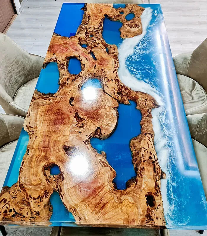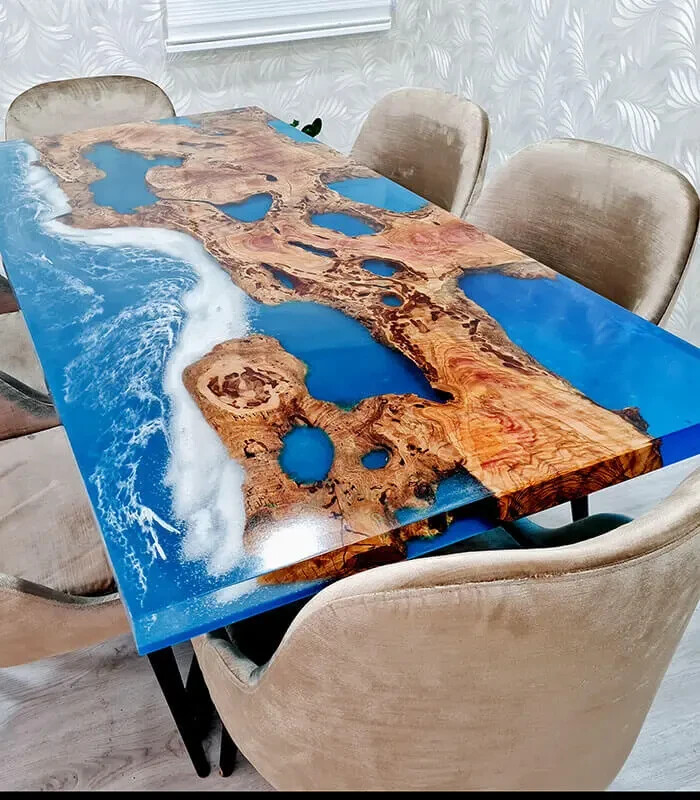 "I absolutely love this epoxy wooden table! The craftsmanship is top-notch, and it's even more stunning in person. The seller was excellent with communication and made the purchasing process smooth and enjoyable. I'm very happy with my purchase and would highly recommend this product to anyone looking for a unique and high-quality piece of furniture."