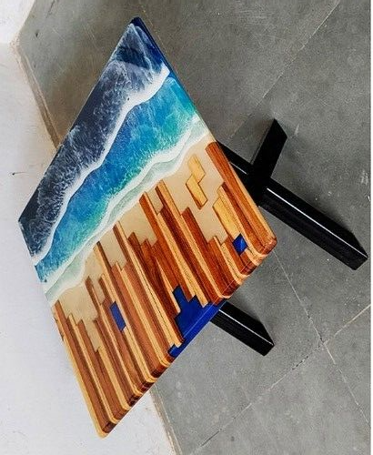 Transform your kitchen and dining space into a coastal haven with our stunning Ocean Walnut Epoxy Table. Meticulously handcrafted, this one-of-a-kind piece seamlessly blends the warmth of walnut wood with the ethereal beauty of ocean-inspired epoxy resin. Key Features: Natural Elegance: The table is crafted from high-quality walnut wood, showcasing its natural grains and warm tones. Each piece of wood is carefully selected for its unique character. Oceanic Resin Artistry: The tabletop features a captivating epoxy resin design that mimics the fluidity and movement of ocean waves. Swirls of blues, greens, and whites create a mesmerizing visual experience. Durable and Functional: The epoxy coating not only adds a stunning aesthetic but also provides a durable, heat-resistant, and easy-to-clean surface, making it ideal for daily use in your kitchen and dining area. Versatile Design: Whether you're hosting a dinner party or enjoying a family meal, this table seamlessly blends into various decor styles, from coastal and rustic to modern and contemporary. Custom Craftsmanship: Each table is handcrafted by skilled artisans, ensuring a level of craftsmanship and attention to detail that sets it apart from mass-produced furniture. Specifications: Dimensions:24"x12" Inches Materials: High-quality wood, epoxy resin Colors: Ocean Blue Finish: Glossy and durable Shipping and Packaging: * We can make the table top similar to this as it is handmade or natural process you will not get the same as shown in picture but you will get the similar one * The table top is made in Agra India & fully handmade. * The top will be delivered by FedEx or DHL free of cost door to door. * If there is any local tax, custom duties or Vat will be paid by the buyer at the destination. * The parcel is dispatch with proper packing & fully insured covering all kind of risk. Thanking You...